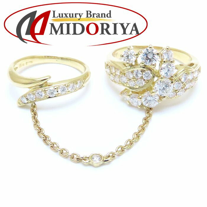 - Queen クイーン ダイヤモンド リング 指輪 2連チェーン付き ダイヤモンド1.06ct 10号 5号 2本指用 K18YG イエロー...