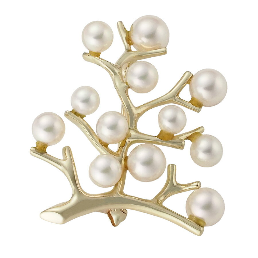 - ミキモト パール 幸福の木 ブローチ K14YG【中古】【JS1841】