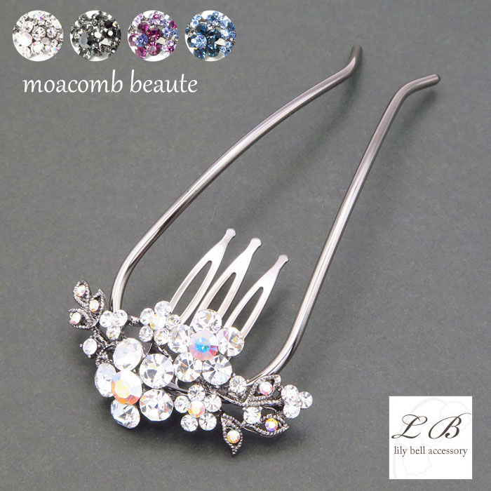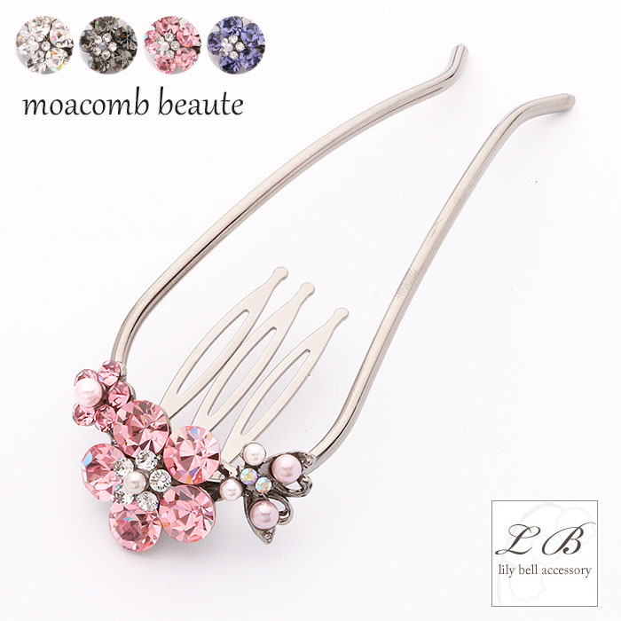 - 【メール便送料無料】夜会巻きコーム ヘアコーム / モアコームボーテ 大粒 花 フラワー 上品 オクタントクリスタル...