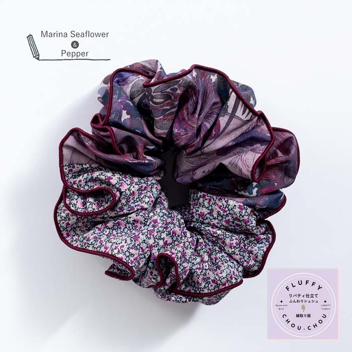 - リバティ複数柄(マリーナ・シーフラワー & ペッパー)仕立てふんわり シュシュ