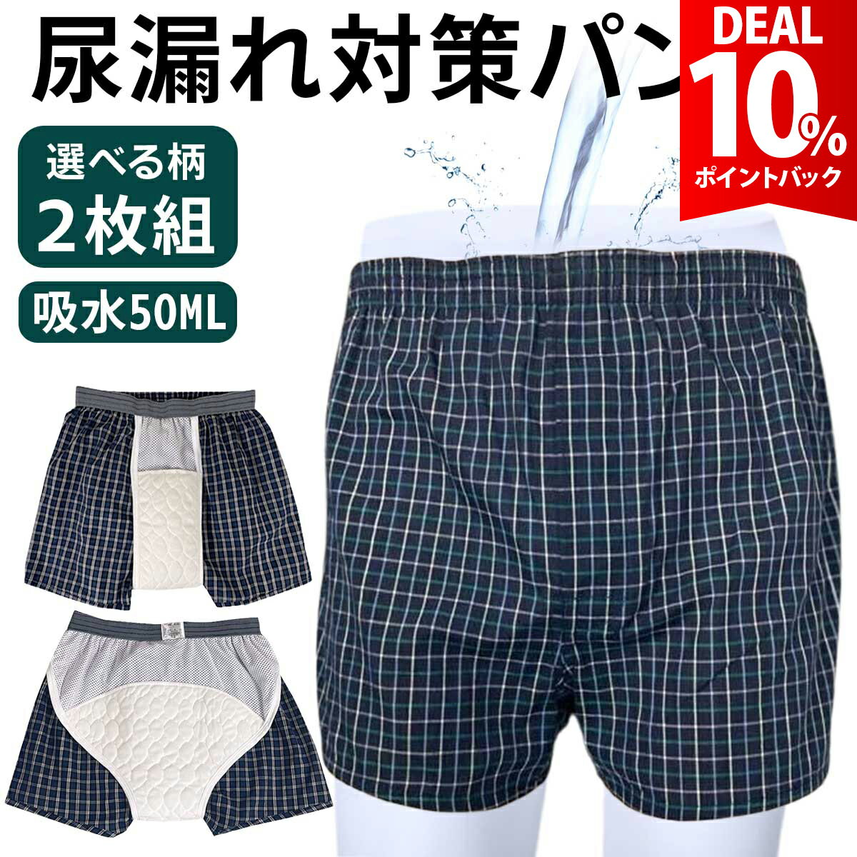 - 【DEAL★10%ポイントバック】【2枚組・吸水50cc】尿漏れパンツ 男性用 失禁パンツ 男性用 ちょい漏れパンツ 男性用 ...
