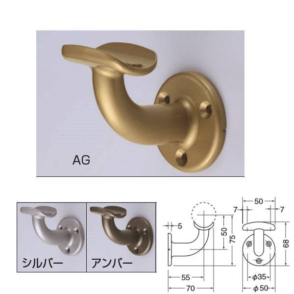- 【シロクマ】オフセット手すり BR-572 600mm シルバー/ライトオーク(数量:1)