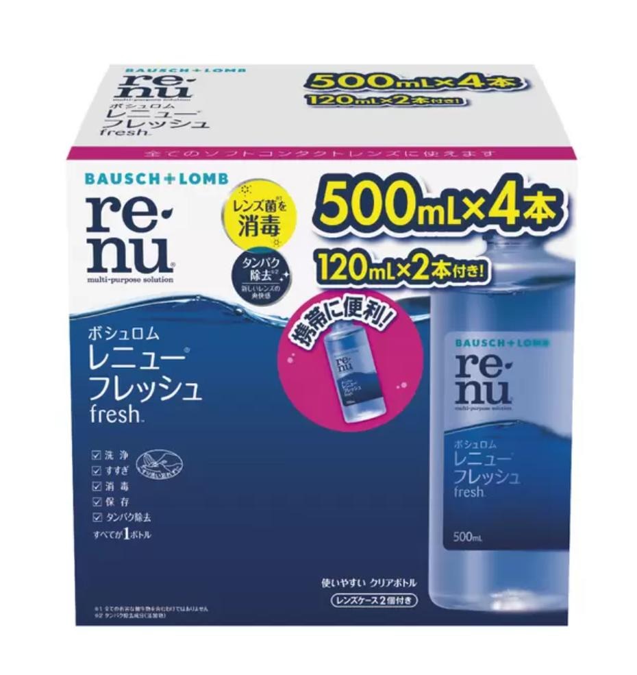 - ボシュロム レニュー フレッシュ 500mL × 4本 + 120mL × 2本 コンタクトレンズ用消毒剤 + コンタクトレンズケース ...
