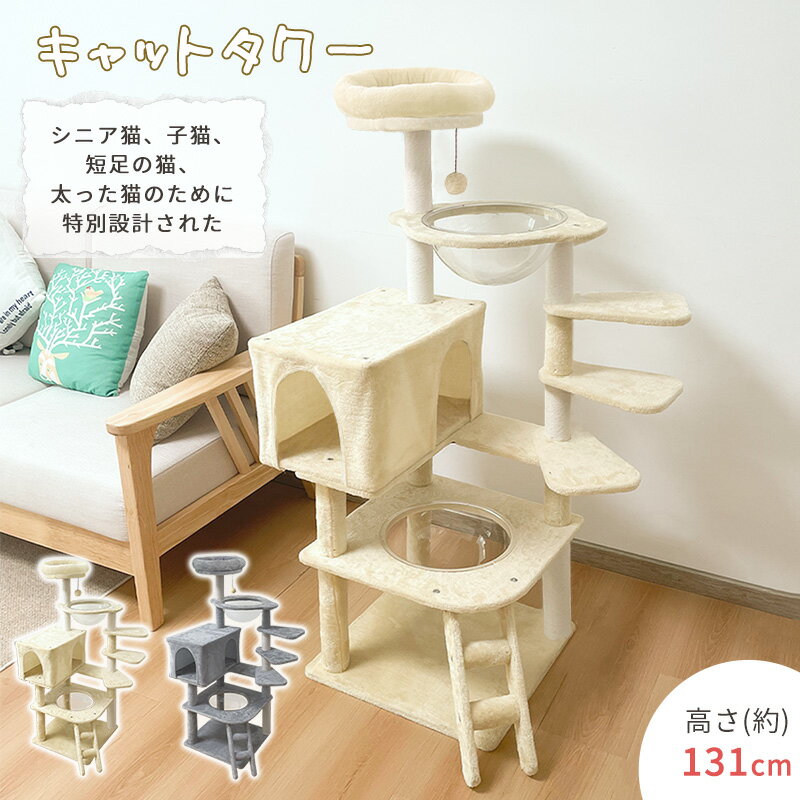 - 【エントリーでポイント5倍!】 キャットタワー 猫タワー キャットタワー おしゃれ 大型猫 多頭飼い 据え置き スリ...
