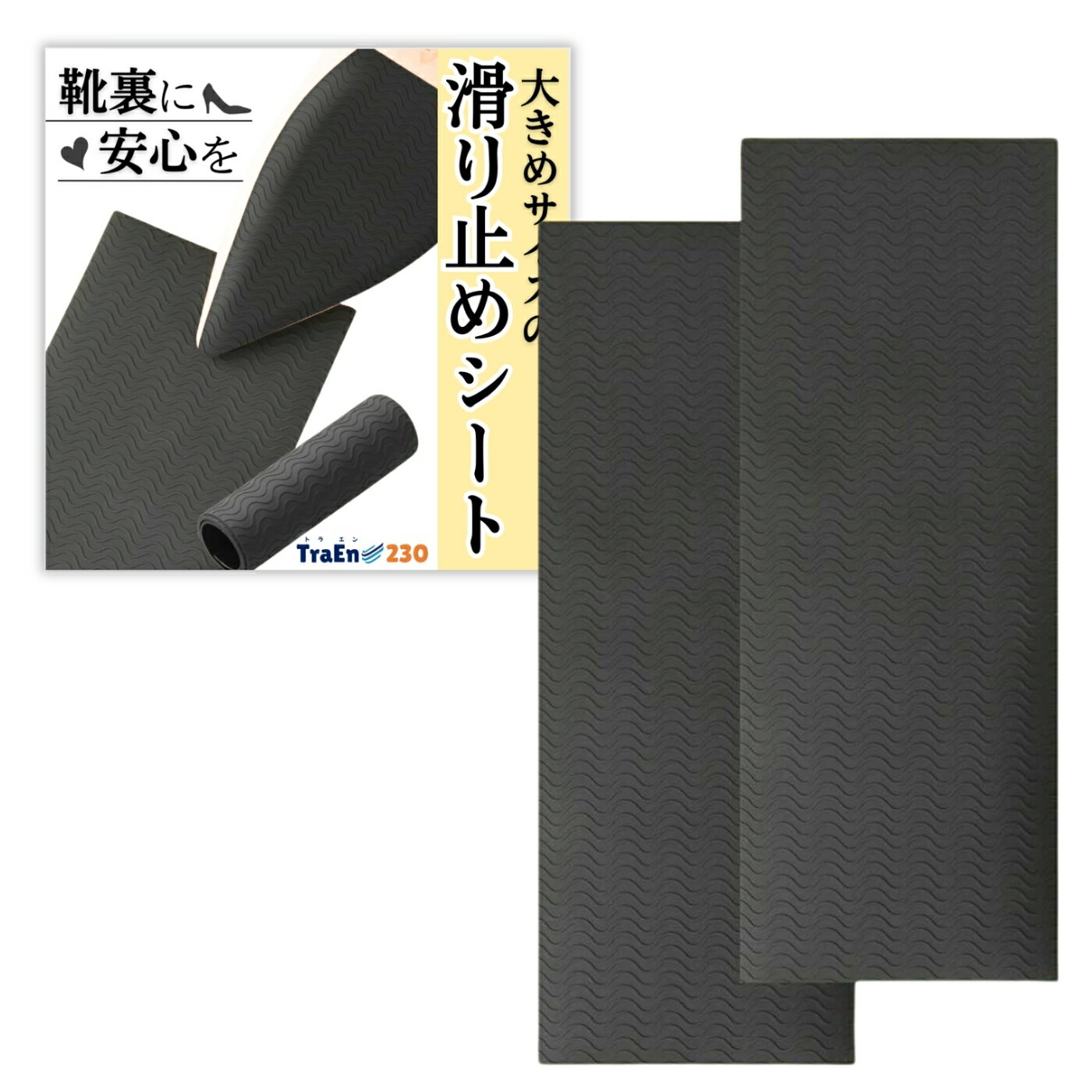 - 楽天1位【高評価レビュー4.7点】靴底 滑り止めシート 長方形 13x8cm 黒 2枚セット ゴム 滑り止めパッド ツルツル ...