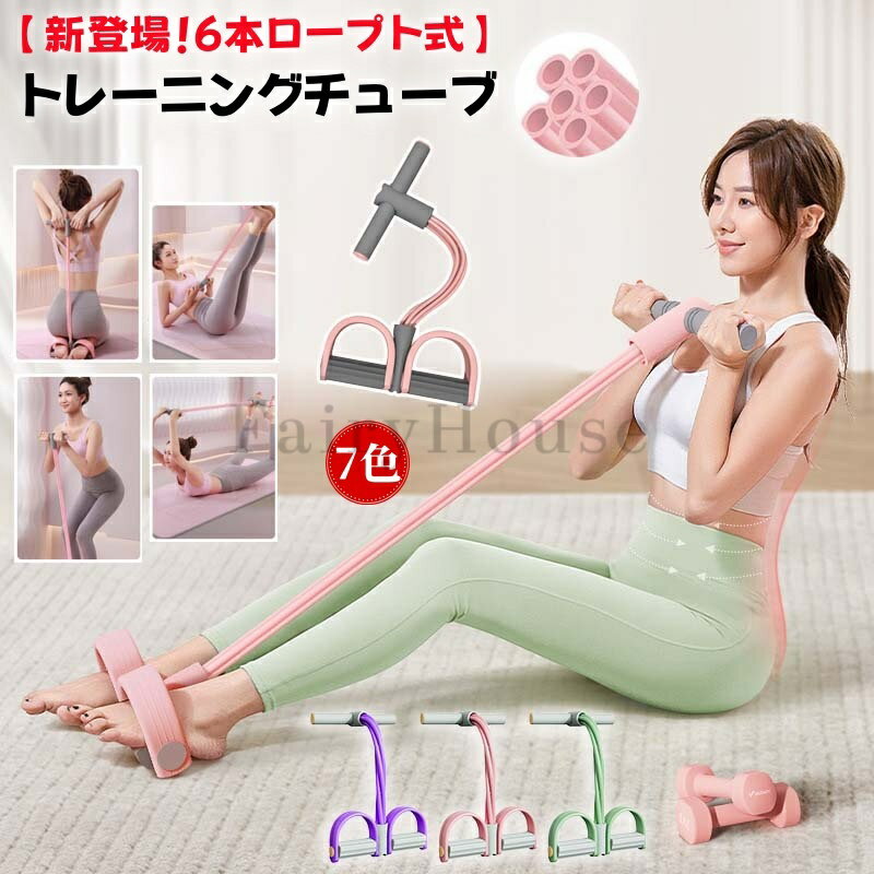 - \6%OFFクーポン/【新登場 強化6本ロープ式!】トレーニングチューブ ストレッチバンド ペダル付き 脚 腕 肩 肩甲...