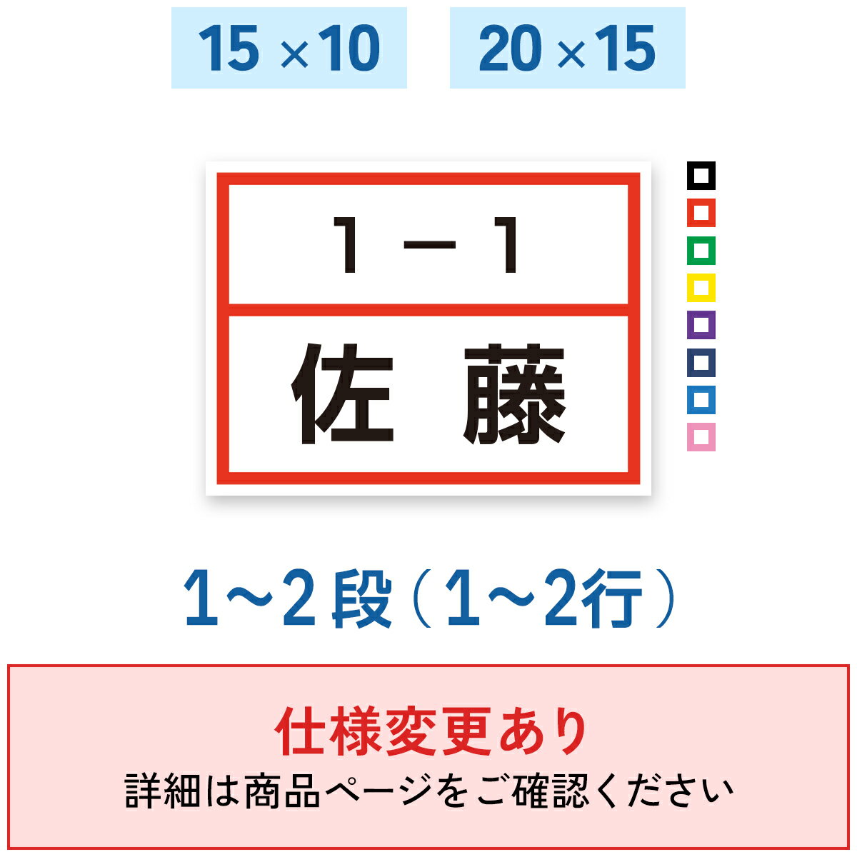 - 【仕様変更あり】一般カラーゼッケン 1〜2段 W15cm×H10cm W20cm×H15cm ゼッケン 選べる生地タイプ 選べる生地サイズ
