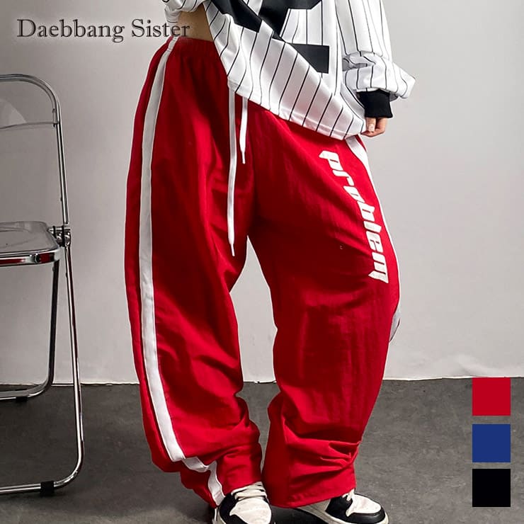 - Daebbang Sister 正規品 デッパンシスター レディース パンツ トラックパンツ ロング カーブ バルーン サイドライ...