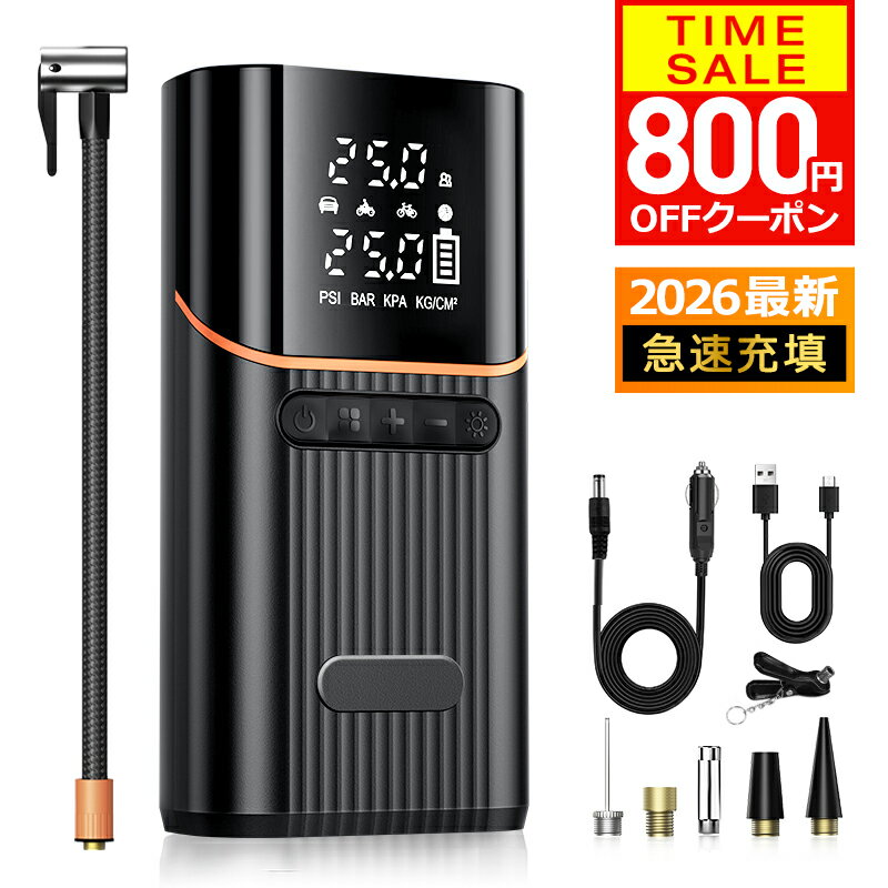 - P5倍 【爆安好価3,180円〜クーポン利用で】 \楽天1位・連続19冠/ 空気入れ 電動 充電式 6000mA 大容量 電動エア...