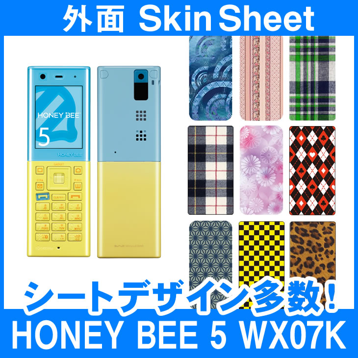 - willcom HONEY BEE 5 WX07K 専用 スキンシート 外面セット(表面・裏面) 「選べる100柄以上!」★ご注文時柄をお選び...