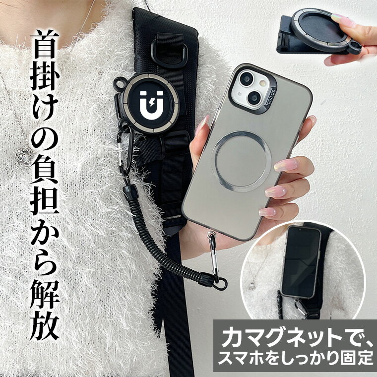- マグネット スマホショルダー マグネット式 ワンタッチ ネックストラップ 360°回転 盗難防止 落下防止 スマホショ...