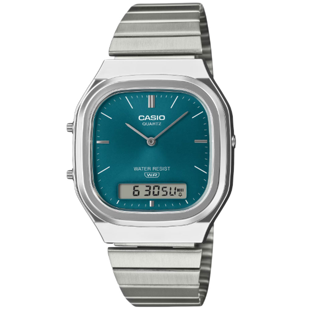 - CASIO CLASSIC AQ-240E-3A アナデジ クオーツ カシオ クラシック シルバー ブルーグリーン ユニセックス腕時計 ...